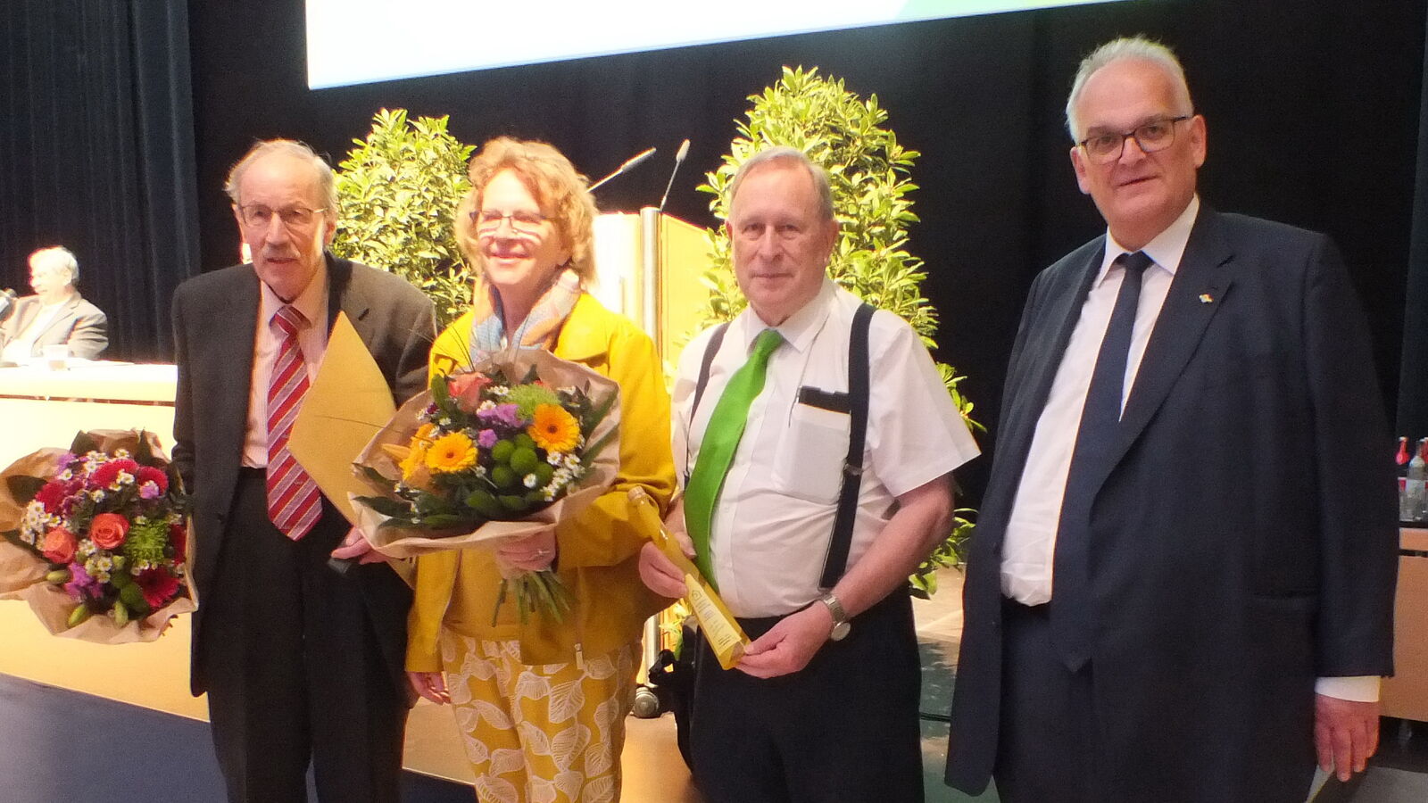 Drei überaus verdienten Mitgliedern wurde in dieser großen Delegiertenrunde besonders Dank gesagt: Bernd Zechmann und Inge Kellermann erhielten unter Applaus das Große Goldene Ehrenzeichen. Für Hans-Jürgen-Amend blieb am Ende seines Engagement als langjähriger Revisor nur viel Applaus, ein herzliches Danke und ein kleines Präsent, denn, wie Präsident Limmer mit einem Schmunzeln betonte: "Herr Amend ist bereits ausgeehrt. Er hat schon alle Auszeichnungen!"