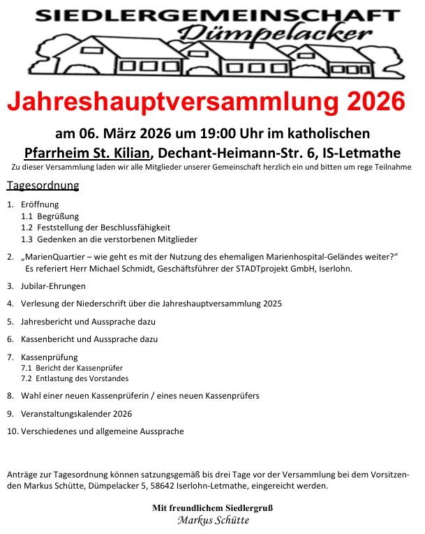 Siedlergemeinschaft Dümpelacker e.V. Letmathe