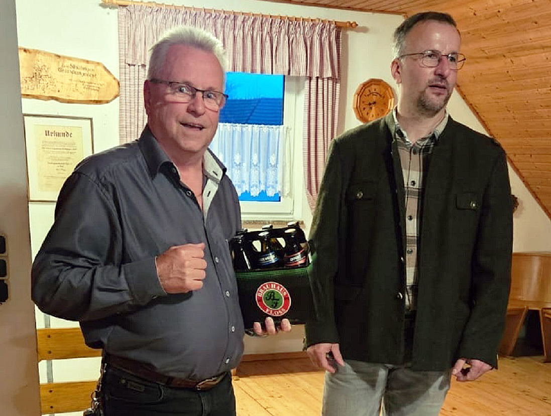 Siedlergemeinschafts-Vorsitzender Josef Barth bedankte sich nach dem kurzweiligen und informativen Vortrag mit einem "Sechser-Tragerl" Bier aus dem Flosser Brauhaus. "Wir haben viele wertvolle Tipps über Tricks und Maschen von Betrügern erhalten", sagte er abschließend. Text: St. Landgraf