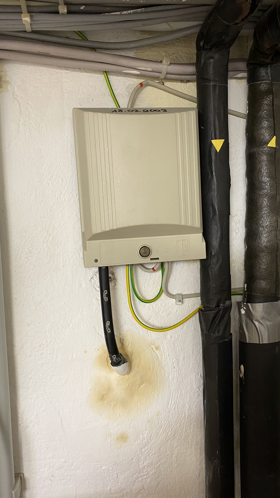 Die TAE Dose befindet sich idR. in der Wohnung. Hier im Foto im Keller, da sich der Router ebenfals im Keller befindet.