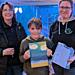...und ein glücklicher Sieger! Organisatorin Bärbel Held (links) und Christine Kubitza (rechts), Vorstandsmitglied der Siedlergemeinschaft, übergaben den Hauptpreis, einen Besuch in der Kunsthalle, an Lukas. Herzlichen Glückwunsch! Foto: © Siedlergemeinschaft