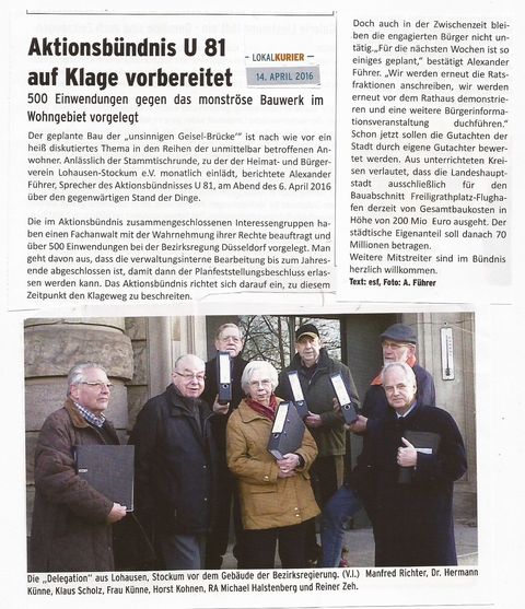 R.P. Online: Bürger reichen Klage gegen U81 Planfeststellungsbeschuss ein
