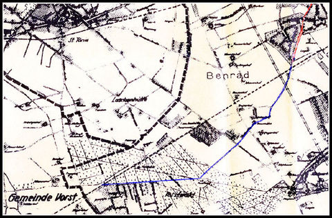 Als Teil einer geplanten Obus-Durchmesserlinie zwischen Oppum und Anrath eröffnete die Krefelder Verkehrs-AG am 3.12.1949 ihre 4,13 km lange Obusstrecke vom Hauptbahnhof (Ost-/Südwall) durch Breite-, Markt- und Forstwaldstraße zum Bahnübergang Benrad. Die vom Städtischen Elektrizitätswerk mit 650 V= gespeiste, frei bewegliche Kupferfahrleitung der AEG kreuzte siebenmal den Fahrdraht der Straßenbahn und hatte in Kurven feste Aufhängungen. Zur Bedienung der Siedlungen des Edelstahlwerks war die Linie als Ersatz für die Omnibuslinie S gedacht, doch juristische Probleme verhinderten eine Kreuzung mit der DB-Strecke Krefeld ? Viersen und somit eine Fortführung bis Anrath (Forstwald), so daß ein Anschluß-Dieselbus zum Einsatz kam, während die Obusse auf dem innerstädtischen Teil mit seinen engen Straßen pendelten. Ebenso konnte die in der Gegenrichtung geplante Verlängerung vom Hauptbahnhof zur Siedlung Oppum nicht mehr realisiert werden. Die ersten beiden Obusse mußten stets hinter Straßenbahnwagen von der Wagenhalle Stadtmitte zum Hauptbahnhof u.z. geschleppt werden, denn es gab für sie keine Zufahrtsstrecke.