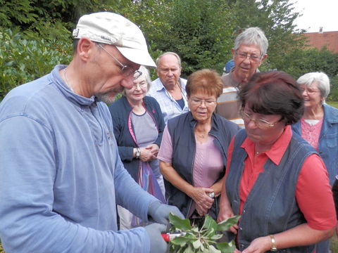 Im Garten von Familie Baumung, Hambühren fanden sich 28 Interessierte ein, um ihre Kenntnisse im Obstbaumschnitt zu verbessern. Einleitend erklärte Rodemann, dass durch den Frühjahrsschnitt das Holzwachstum gefördert wird während der Sommerschnitt ein Beruhigungsschnitt ist, der die Fruchtbildung begünstigt.