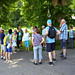 Bei sonnigem Wetter erfolgte offiziell die Begrüßung der Kinder und eine kleine Einführung zum Thema Vogel Nistkastenbau.