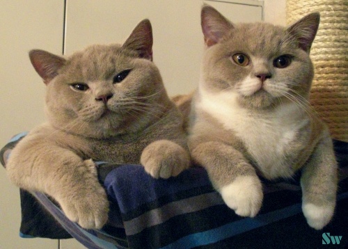 Auf der Januar-Seite zeigen uns Mitglieder ihre verschneiten Gärten und Bilder der Vogelfütterungen. Es sind auch zwei Katzen abgebildet, die aus sicherer Entfernung die Vögel beobachten Januar 09 . Aufgrund mehrfacher Nachfrage werden die Katzen hier vorgestellt. Daya und Delia sind Britisch Kurzhaar in den Farben lilac und lilac-weiß. Sie stammen aus dem Zwinger "Of-Storm-Whispers" und wurden am 13.05.2008 geboren.