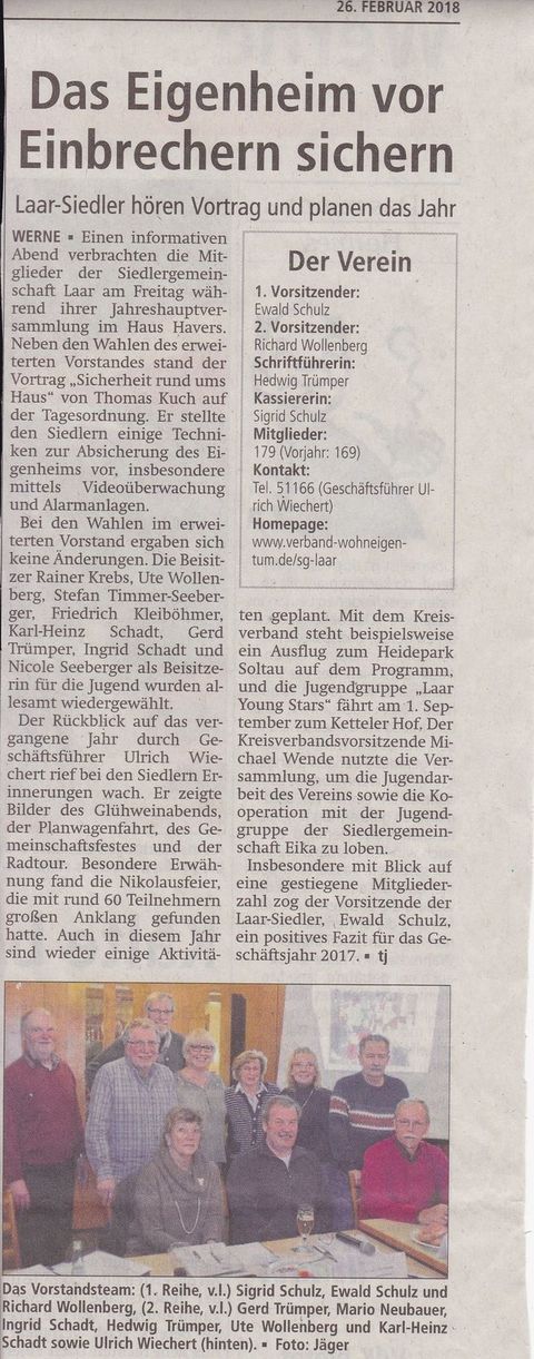 Werne. Anfang November 2025 ist bei einer außerordentlichen Jahreshauptversammlung der neue Vorstand der Siedlergemeinschaft Laar im Verband Wohneigentum gewählt worden.