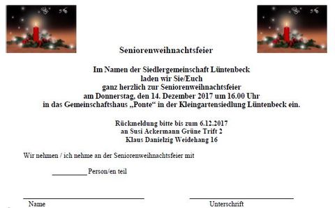 14.12.2017 Seniorenweihnachtsfeier ab 16:00 Uhr