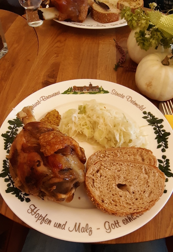 23. September, ein guter Tag! Zu "christlicher Zeit", nämlich um 10 Uhr ging die Fahrt los. Über den Neustädter Bahnhof zurück zum Poggenhagener Bahnhof und von dort mit voll besetztem Bus zur Mooshütte am Deister. Dort wartete eine in bayerischer Trachtenmode gekleidete Mannschaft und sehr geschmackvoll eingedeckte Frühstückstische auf uns. Zum Start ein Glas Sekt, danach ein ausgiebiges Frühstück, bei dem kein Wunsch offen blieb.Sekt zur Begrüßung: Auf einen schönen Tag! © SB Auf langen Tischen... © SB ...wie auch an großen viereckigen Tischen war prächtig aufgetragen, die Stimmung schon jetzt ausgesprochen gut. © SB Dermaßen gestärkt ging es dann weiter, zunächst über die Autobahn A2, dann über Landstraßen bis zu unserem Zielort Detmold im Lipperland. Auch dort erwartete man uns und zwar bei der Privatbrauerei Strate, Das Brauereisiegel © US ein Unternehmen, das von drei Damen geführt wird! Wir wurden allerdings von einem männlichen Braumeister in Bestform durch die Brauerei geführt und in die höheren Weihen des dortigen Bierbrauens eingeführt.Der Braumeister empfängt uns mit viel Humor und noch mehr Fachverstand © US © PB Ein liebevoll gestaltetes Modell der gesamten Brauerei. © US Anschließend fanden wir uns in der "Stratosphäre", dem Erste-Klasse-Bewirtungsraum der Brauerei ein. Nach der Verköstigung einiger Craft Biere, kamen die meisten von uns allerdings wieder zu den gängigen Biersorten Pils, Landbier oder Märzen zurück, als Begleiter zu Schweinshaxe, Sauerkraut und Treberbrot. © US Das Bier schmeckt - offensichtlich:-) © US Schweinshaxe mit Treberbrot und Krautsalat © US Gegen 18.30 Uhr war dann aber auch genug und bei inzwischen gehobener Stimmung ging es zurück in die Heimat. zum Fußballspiel gegen Ungarn (welches leider verloren ging) war dann ein Jeder wieder zu Hause. Noch immer ziemlich satt, aber glücklich und zufrieden: Ein toller Ausflug, der in der Planungsphase diesmal sehr viel Arbeit gemacht hat, die sich aber - im Nachhinein gesehen - gelohnt hat!