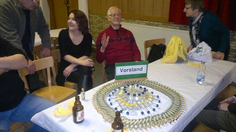 Aber auch diesmal ging es ja nicht allein um's Eisbein; Geselligkeit war angesagt! Unsere gut bestückte und dennoch in Teilen "geplünderte" Getränkebar stellte sicher, dass der Stimmungspegel alles andere als einen Knick erfuhr.