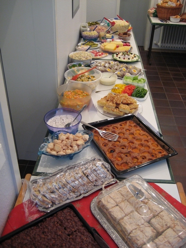 Nach der Begrüßung durch unseren 1. Vorsitzenden Harry Rother machten sich alle über das wieder reichliche und auch sehr schmackhafte Buffet her. Vom herzhaften Fisch, Sauerfleisch, schmackhaften Salaten, Rührei mit Speck bis hin zu diversen Kuchen und Süßspeisen - alles war dabei. Jeder Gast hatte sich wieder etwas Besonderes einfallen lassen, so dass die Auswahl was man auf den viel zu kleinen Tellern mitnehmen sollte, reichlich schwer fiel.