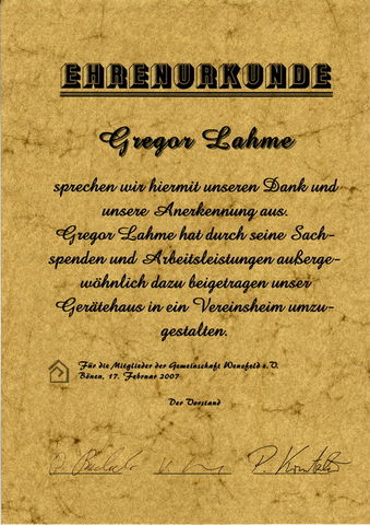 Auf der Jahreshauptversammlung am 17.02.2007 wurden für besondere Leistungen