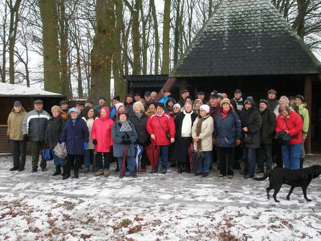 Am 1. Sonntag im neuen Jahr ist die Grünkohlwanderung des Verbandes Wohneigentum Niedersachsen e.V. der Gemeinschaft Wittingen schon Tradition geworden. Treffpunkt war am Rathaus und 66 Mitglieder und Freunde nahmen an der Wanderung teil. Gewandert wurde über den Fuhlenriedweg, Glüsingen nach Darrigsdorf zum Grillplatz. Da es der Wettergott an dem Tage nicht so gut mit uns meinte waren alle froh über die Pause. Gestärkt haben sich die Wanderer bei Punsch, Glühwein, Keksen und für ganz Harte war auch eine Flasche Bier zuhaben. Nach ca. einer halben Stunde wurde der Weg fortgesetzt. Über den Darrigsdorferstrumpf und durch die Nachtweide war das Ziel dann Hotel Nöhre, wo mit dem Grünkohlessen der Tag ausklang. Der erste Vorsitzende Wolfgang Berlin dedankte sich noch einmal bei allen Teilnehmern und Helfern und hofft auf eben so eine gute Beteiligung im nächsten Jahr.