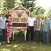 Die Ehrengäste mit Wolfgang Etzel (von links) vom Verband für Wohneigentum, Vorsitzender Robert Heinkel, Ortssprecherin Anni Schlötter und Bürgermeister Stefan Güntner, freuen sich mit den Baumeistern Horst Steinberger, Friedrich Mann, Konrad Fink und Herbert Emmerich über das eingeweihte Insektenhotel. Foto: Ernst Hack