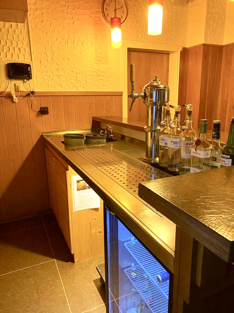 Theke mit Zapfanlage (Fassbier muss über den Siedlerring bezogen werden)
