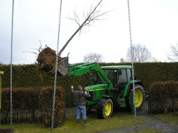 Den Apfelbaum zog Hubert Meiler am 17.3. mit dem Traktor aus dem Boden, den Ahornbaum besorgten, transportierten und pflanzten am 27.3. 1. Bgm Boris Damzog und 2. Bgm Rainer Radies bei strömendem Regen in einer Gemeinschaftsaktion!