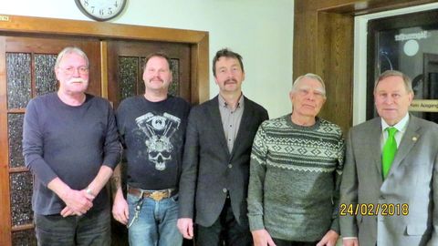 Von links: Siedlergemeinschaftsleiter Georg Koch, 2. Vorsitzender Detlef Purucker, 3. Bürgermeister Michael Rädlein, Ehrenmitglied Ewald Geuß, stellv. Bezirksvorsitzender Hans-Jürgen Amend. © Lona Koch